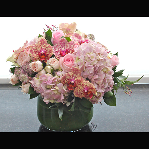 This arrangement of pale pink flowers is simply divine. Available in smaller vases.
